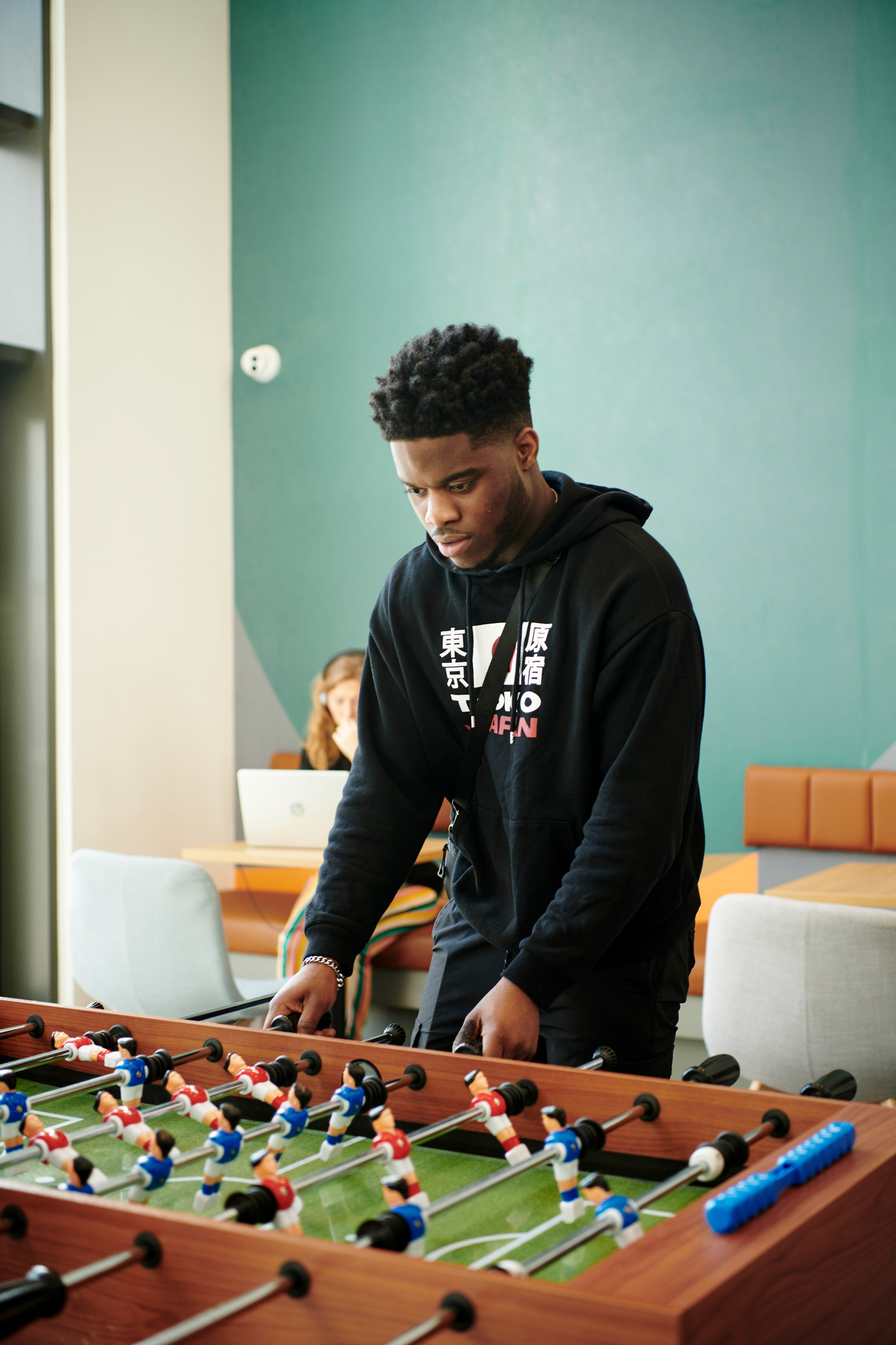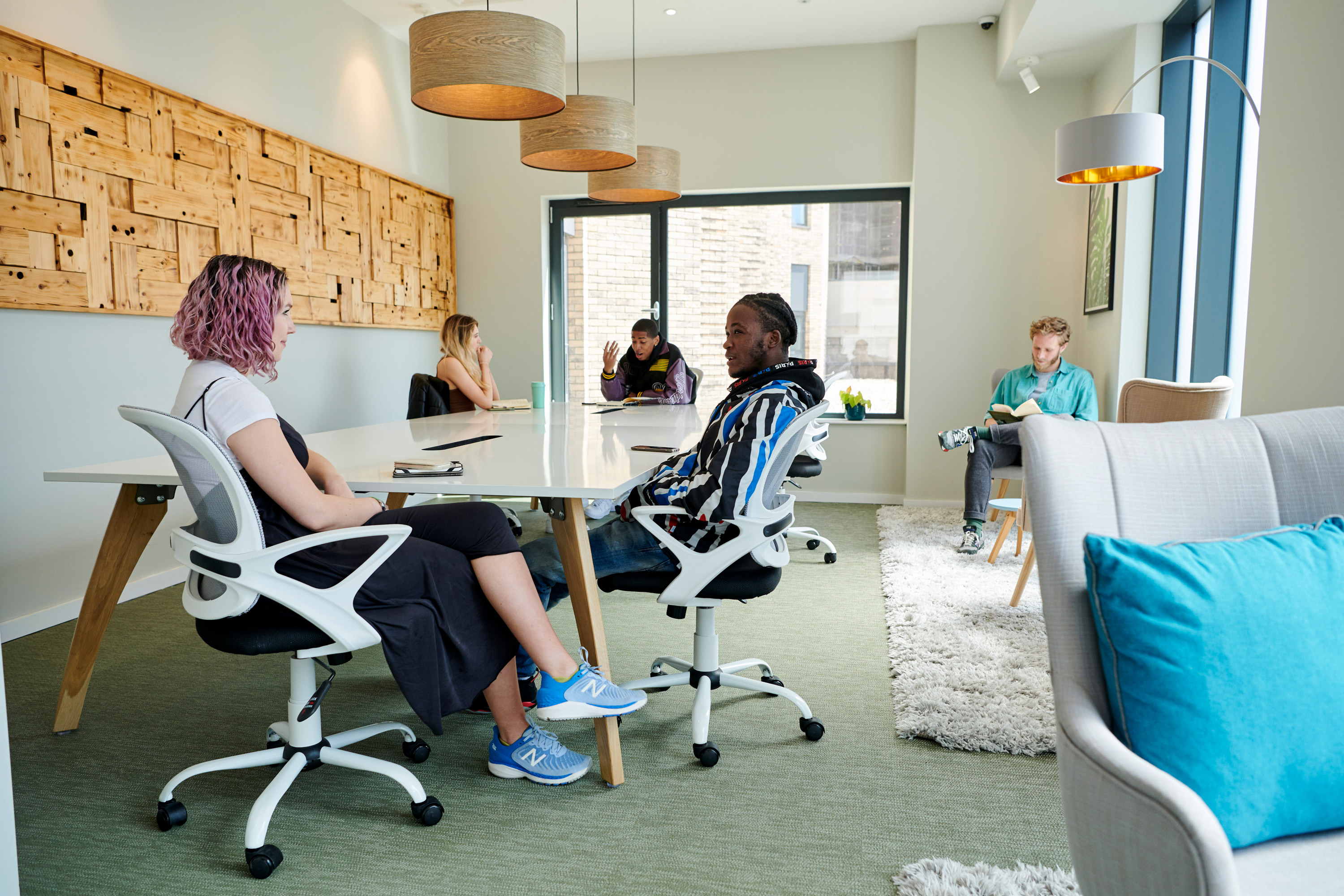 What’s student accommodation without somewhere to meet and study? We fill our spaces with comfy chairs and sofas, and a range of tables designed to host everything from laptops and coffee cups to ping-pong games and table football.